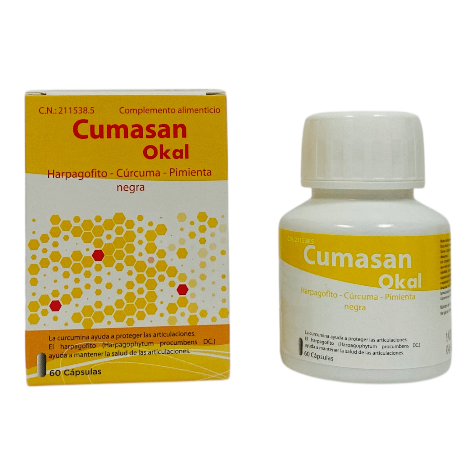 Cumasan es el novedoso antiinflamatorio natural desarrollado por Laboratorios Okal. Esta formulado con harpagofito, cúrcuma y pimienta negra que ayuda a aumentar su eficacia.