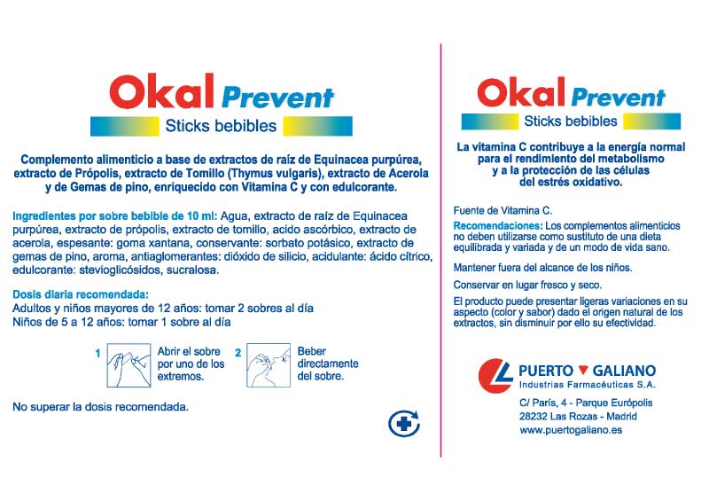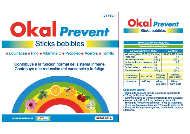 Ingredientes por sobre bebible de 10 ml: Agua, extracto de raíz de Equinacea purpúrea, extracto de própolis, extracto de tomillo, ácido ascórbico, extracto de acerola, espesante: goma xantana, conservante: sorbato potásico, extracto de gemas de pino, aroma, antiaglomerantes: dióxido de silicio, acidulante: ácido cítrico, edulcorante: stevioglicósidos, sucralosa.