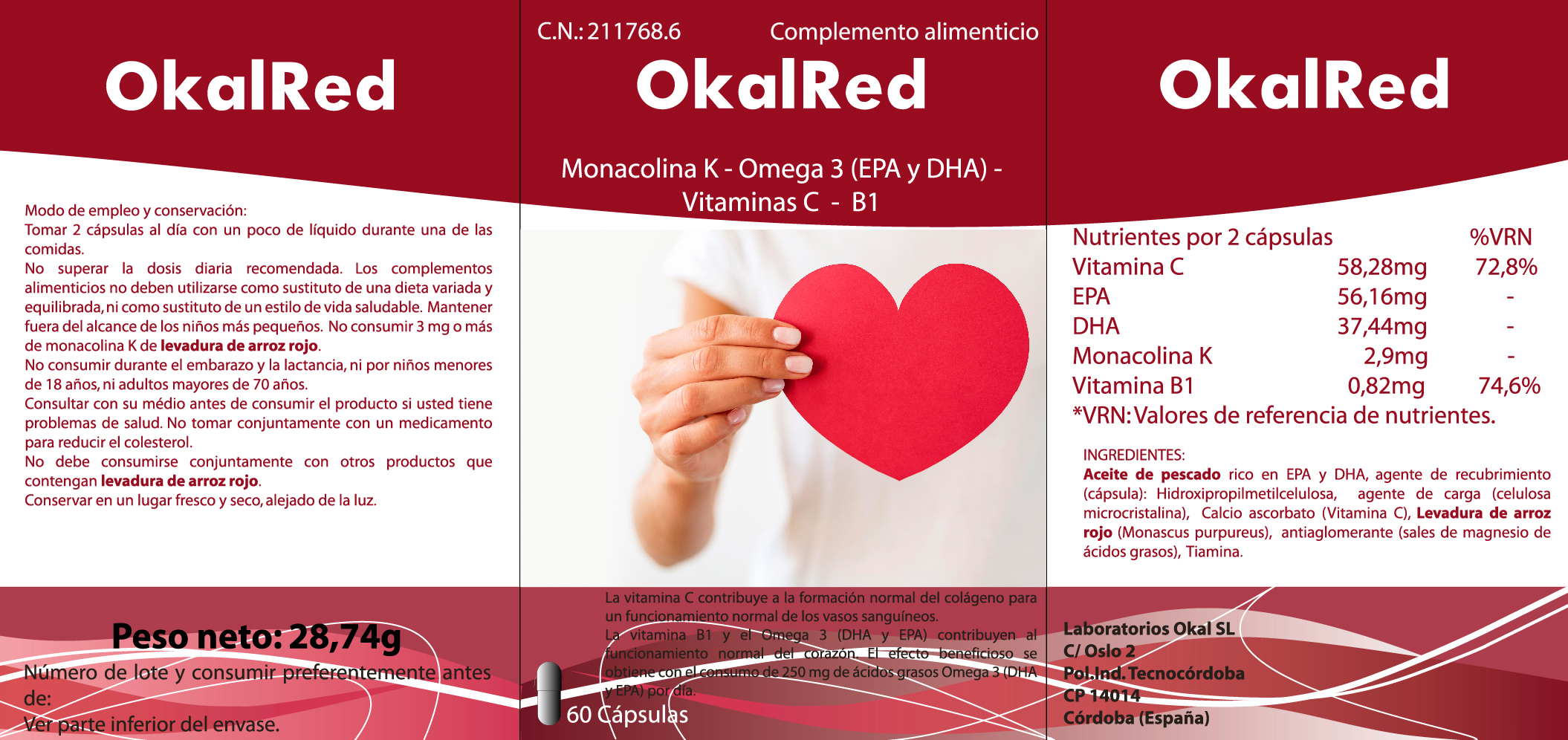 Descubre Okalred, el complemento alimenticio diseñado para apoyar de forma natural el control del colesterol y la salud cardiovascular. Su fórmula única combina levadura de arroz rojo fermentado con monacolina K, ácidos grasos omega-3 (EPA y DHA), vitamina C y vitamina B1, ofreciendo un enfoque limpio y minimalista sin aditivos innecesarios como coenzima Q10 o berberina.